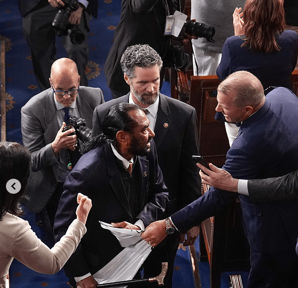 This marked his second ejection from a Trump address, with critics labeling his behavior unserious and clownish. Last year, Green was kicked out for screaming, menacingly waving his walking cane, and disrupting the newly-inaugurated President Trump during his address to Congress.